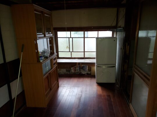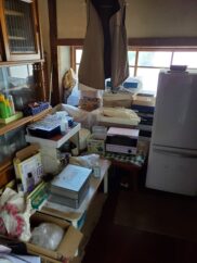 写真の箇所では、細かな物の仕分け・さらに可燃・不燃物の分別とキッチンでは、冷蔵庫といった家電リサイクル法対象商品の回収を行いました。